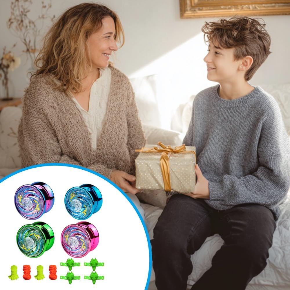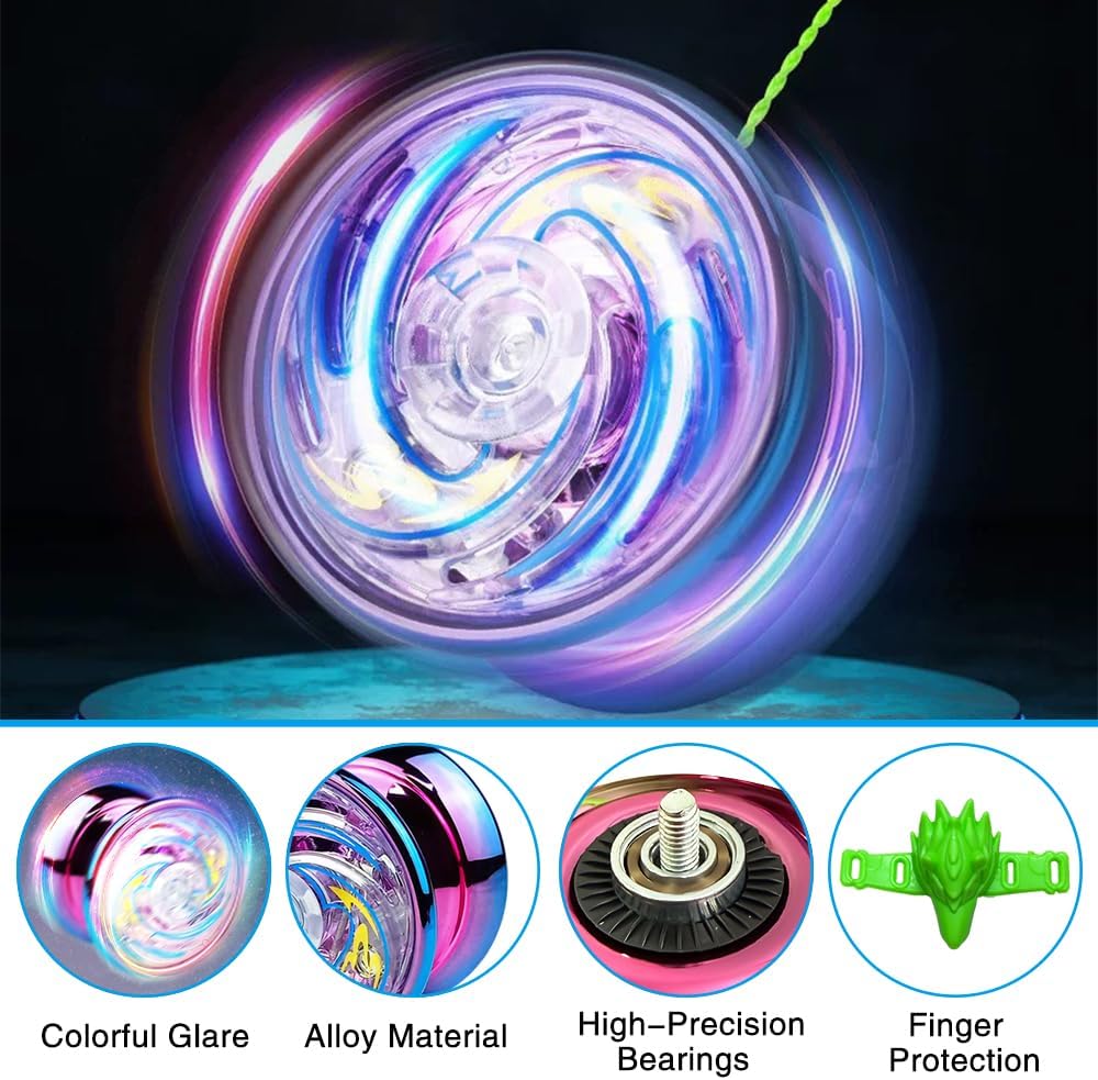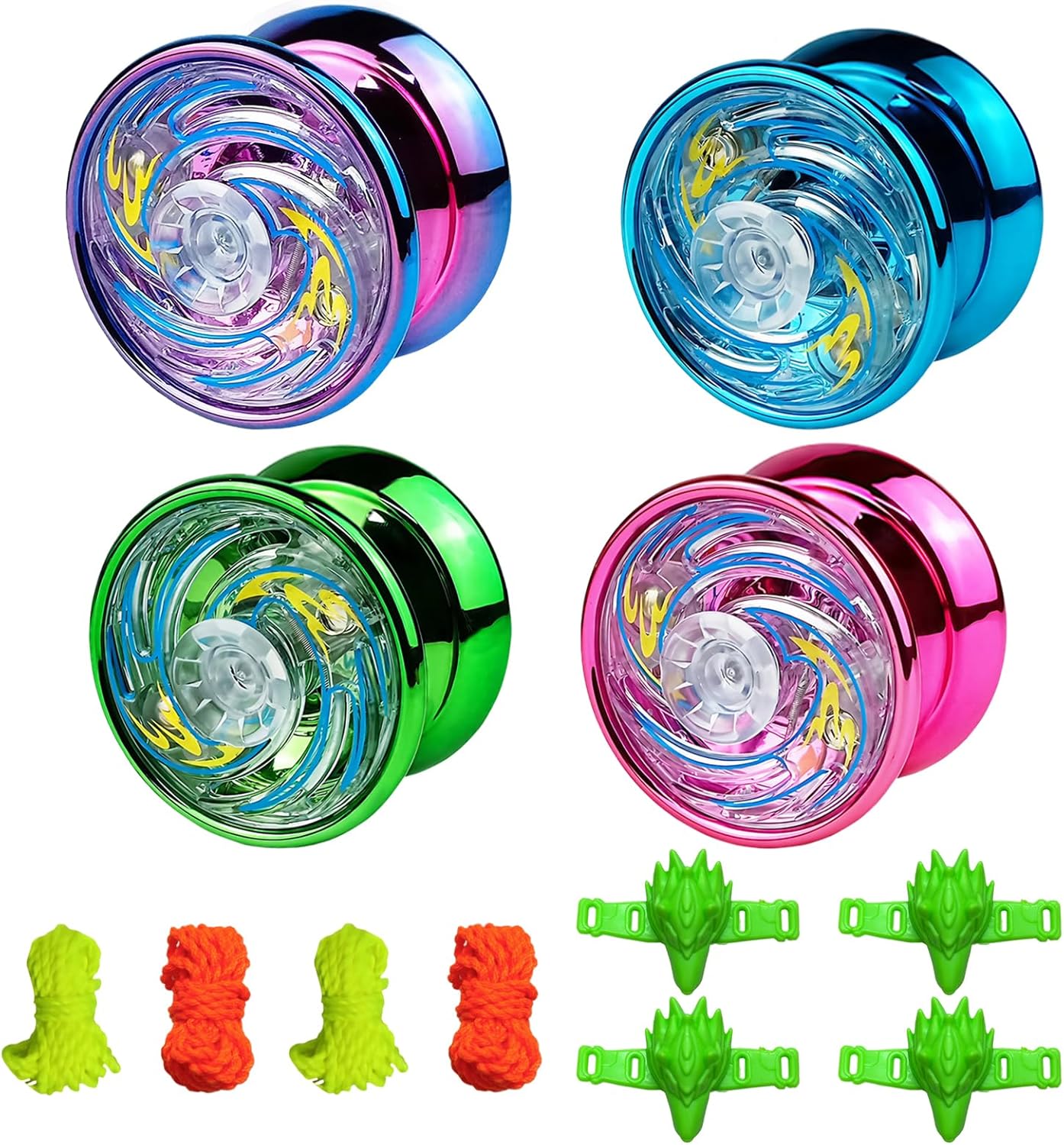 HomeYoyo Spielzeug 4 Stück LED Licht YoYo, Mlegierung Responsive Yoyo, Reaktives Kugellager JoJo, JoJo Leuchtend mit Saiten und Fingerling, für Anfänger, Kinder, Erwachsene