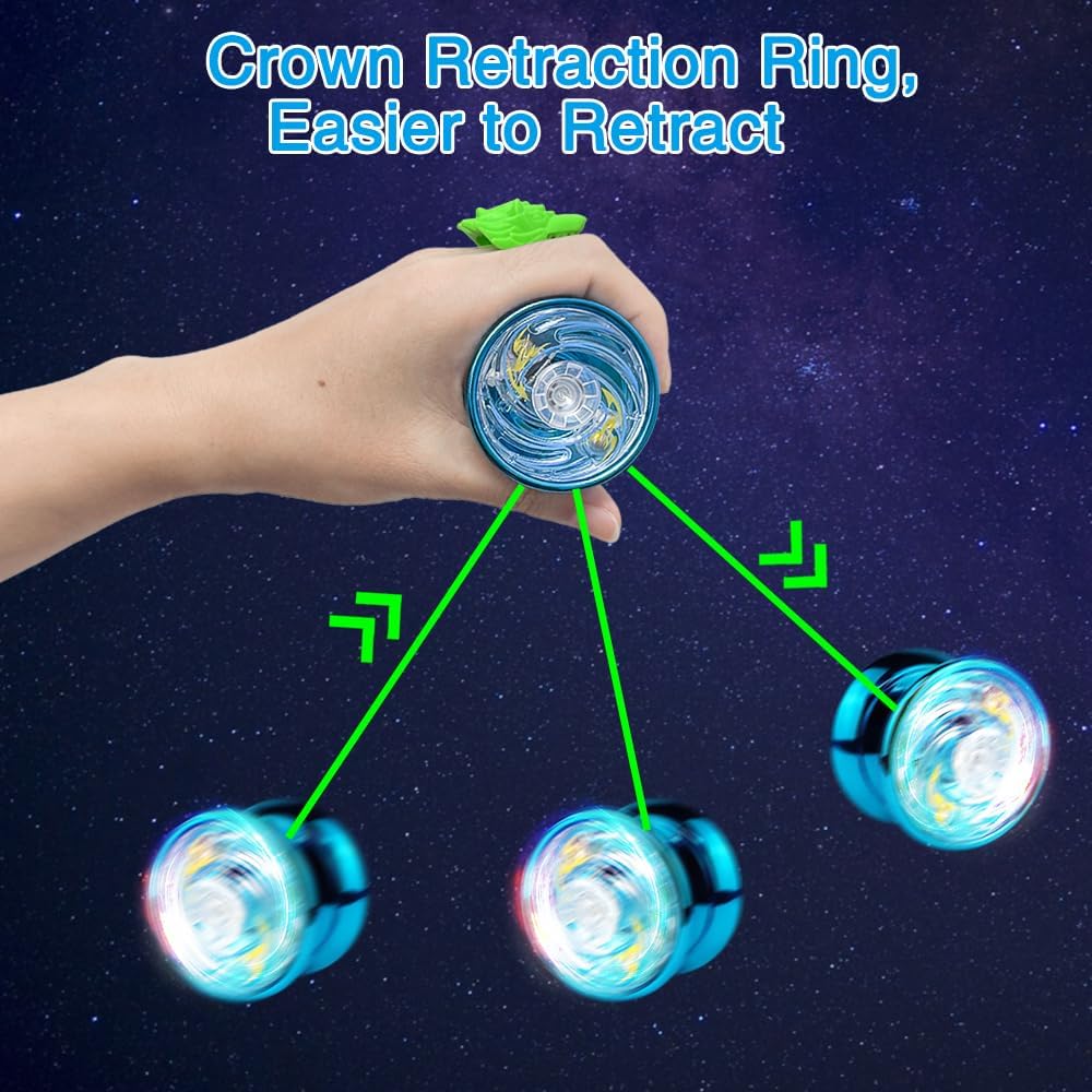 • 🌟[Hervorragende Leistung]: LED Licht YoYo verfügt über professionelle, hochpräzise Kugellager, die sich sanfter drehen und eine längere Leerlaufzeit haben. Mlegierung responsive yoyo reagiert schnell und kann den Ball problemlos zurückspielen. Ziehen Sie während der Drehung einfach leicht am Ballseil, und es lässt sich leicht zurückziehen. So können Sie Ihre Ballfertigkeiten nach Belieben unter Beweis stellen