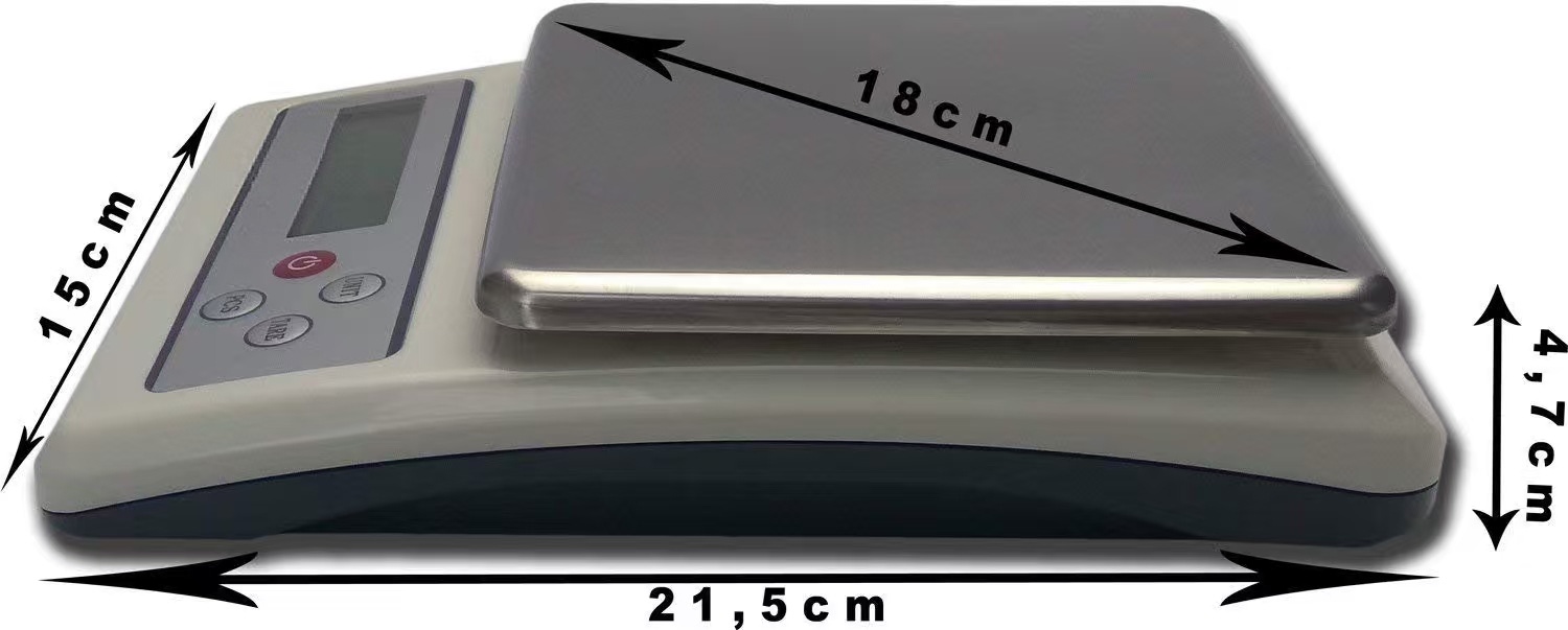 • Funktionen: TARA (Zuwiegen/Behälter auf 0 Setzen) und Gewichtsermittlung als Gramm (g), Kilogramm (kg) oder Pfund (lb). Energieversorgung: Entweder betreiben Sie die Waage mit 4 * AA Batterien (nicht im Lieferumfang) oder mit dem Netzteil (im Lieferumfang). In den Werkseinstellungen geht die Waage 15 Minuten nach der aus . Sollte das nicht reichen können Sie die Zeit zum automatischen Abschalten auf 15, 30, 45 oder 60 Minuten einschalten, oder komplett deaktivieren.